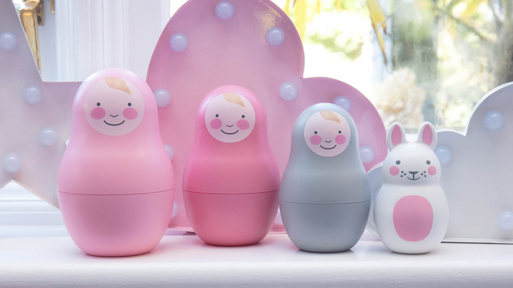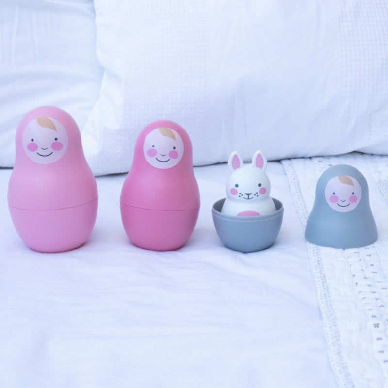 BB&COL'enfant va adorer ce jouet à emboîter poupée Matriochka et son hochet lapin à carillon !