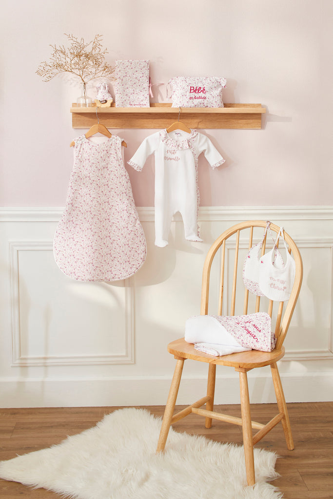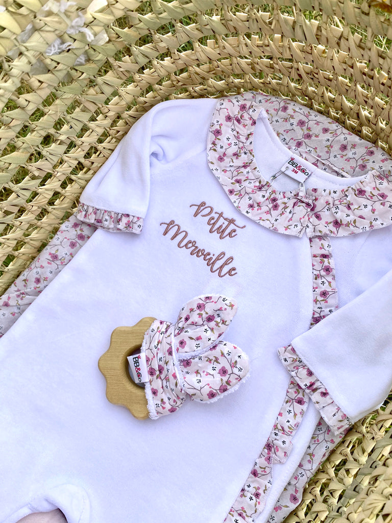 BB&COUn adorable dors-bien en velours pour de douces nuits ! Ouverture intégrale par boutons pression devant. Broderie poitrine et petit volant "petite merveille".